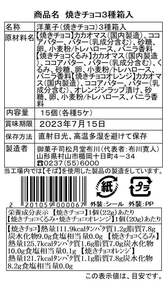 1日限定10セット【送料込みです】心を込めて焼き上げました。焼きチョコ5個、焼きチョコオレンジ5個、焼きチョコくるみ5個セット化粧箱入りです! | 【PaiLabo】Supervised by Shogetsudo Nunokawa【松月堂布川】